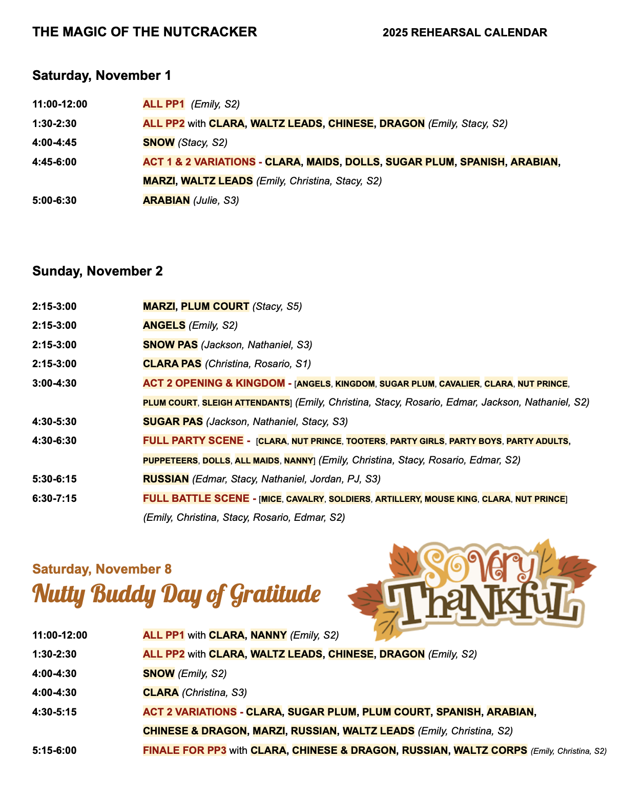 Congratulations Company Performers & families! This is your HQ for all company information, including rehearsal schedules, costume fittings, BRAVO info, and more. Please bookmark this page and check it often! Nutcracker-specific information is found below the “Important Dates” section.